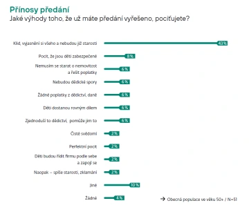 Ti, kteří již procesem předávání prošli, se shodují na tom, že jim předání zvýšilo kvalitu života. „Především jim dodalo klid, že je vše vyřešeno a ujasněno. Mají čisté svědomí a dobrý pocit, že jsou děti zabezpečeny a nenastanou žádné dědické spory,“ shrnuje zjištění Helena Svárovská.